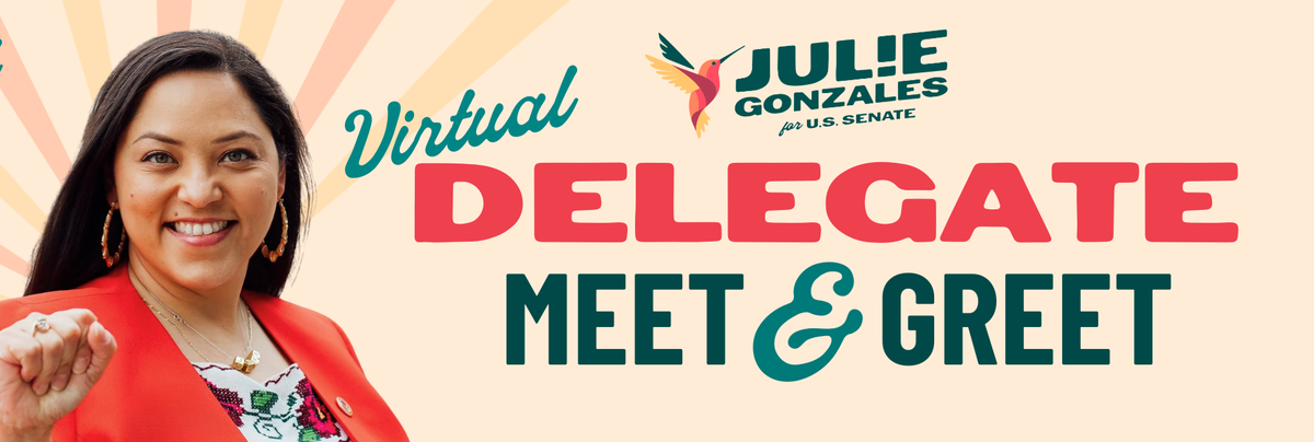 Delegates will play a critical role in determining which candidates move forward to June 30th primary, and we want to make sure you have the opportunity to hear directly from Senator Julie Gonzales. Join us for a virtual meet and greet where state delegates can connect with Julie, learn more about her campaign for U.S. Senate, and ask questions ahead of State Assembly.
